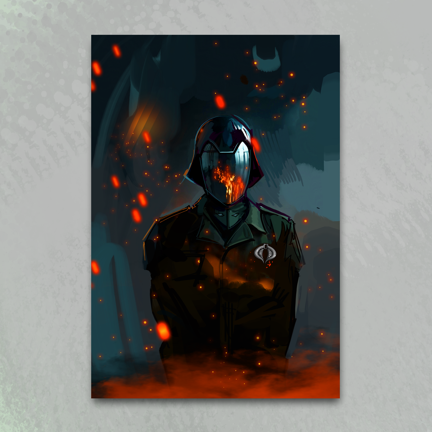 Own a piece of iconic G.I. Joe history with this bold 'Cobra Commander' art print by Venamis Eli Hyder. This fan art celebrates the legendary villain with striking detail and vibrant colors that capture his commanding presence. Perfect for collectors, nostalgia enthusiasts, and anyone who appreciates quality artwork inspired by classic action figures. Display it in your game room, office, or anywhere you want to add some retro cool to your space.